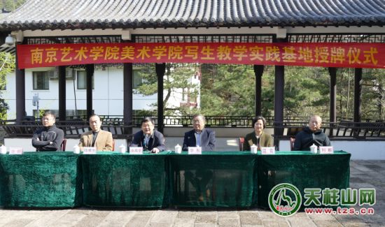 4月12日,南京藝術(shù)學(xué)院與天柱山風(fēng)景區(qū)在天柱山莊廣場(chǎng)舉行“南京藝術(shù)學(xué)院美術(shù)學(xué)院寫(xiě)生教學(xué)實(shí)踐基地”授牌儀式,南京藝術(shù)學(xué)院黨委常委、美術(shù)學(xué)院黨總支書(shū)記、常務(wù)副院長(zhǎng)李彤,美術(shù)學(xué)院關(guān)工委主任陸根生,國(guó)畫(huà)系主任徐鋼,國(guó)畫(huà)研究所所長(zhǎng)劉毅,潛山市委常委、天管會(huì)副主任涂高生,天柱山風(fēng)景區(qū)紀(jì)委書(shū)記江霞出席儀式,南京藝術(shù)學(xué)院美術(shù)學(xué)院百名學(xué)生,天柱山莊全體員工等共同見(jiàn)證這一時(shí)刻。