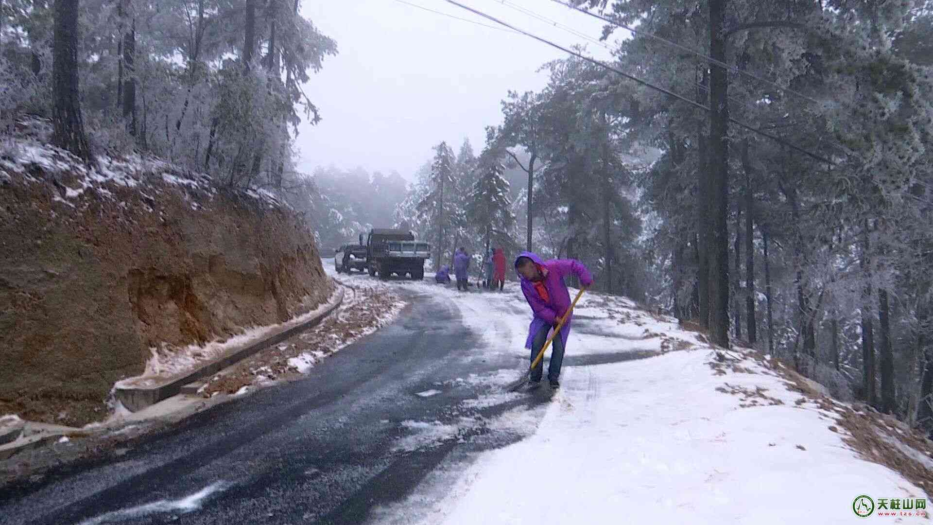? ? 隨即,天柱山管委會啟動應急預案,對道路掃雪除冰工作進行安排部署。12月8日一早,天柱山管委會組織出動應急救援人員60余人,對重點路段拋撒了融雪劑,全面開展掃雪除冰工作,大家不畏嚴寒,揮舞著鐵鍬和掃帚,相互配合,你鏟我掃。同時市地方公路局也組織人員全力配合應急救援人員的工作。