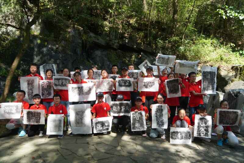 “窮幽深而不盡,坐石上以忘歸”是北宋文學家王安石用以形容山谷流泉美景的經典詩句。在這里,營員們不僅體驗到了青山綠水木橋溪流構成的靜謐之美,還感受到了石刻上的文化與藝術:在長達1500余米的山谷兩岸的石壁上,自唐代至今留存的名家文人石刻將近400方,琳瑯滿目,美不勝收。走在歷代書法藝術長廊之中,仿佛再現了古代文人墨客徜徉于此,物我兩忘,題辭勒石的場景……營員們還合作體驗了拓片的制作,在鍛煉動手能力的同時親近了中國傳統(tǒng)文化,感受了中國書法魅力。
