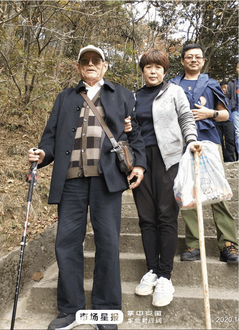 “歲歲重陽,今又重陽,登高望遠(yuǎn),父母安康?!眮碜阅暇┑牧峙颗阒细赣H登山,不停地為老父親拍照,其樂融融。