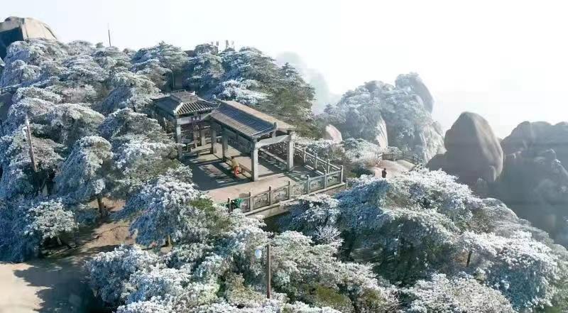 12月13日,安徽天柱山景區(qū)雪后初霽。入冬后的首場降雪把天柱山裝點得格外壯觀。