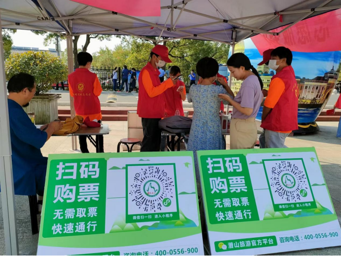 忙碌不停的小志愿者來自天柱山旅游學(xué)校,她們跟隨老師來天柱山景區(qū)宣傳倡導(dǎo)文明旅游新理念、新風(fēng)尚。同時,優(yōu)化文明旅游服務(wù),為游客文明出游提供更好的環(huán)境;倡導(dǎo)游客在旅游過程中,注意佩戴口罩,不扎堆、不聚集,在排隊時注意保持安全距離,不插隊、不爭搶,關(guān)愛老人和兒童,讓文明成為假期里最美的風(fēng)景。