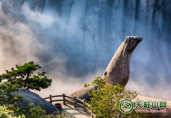 仰慕天柱山,首先是仰慕天柱山的尊嚴(yán)。這是亙古洪荒的大自然杰作,有世上最大一簇石峰花,雄武地綻開在天柱山頂。石峰花呈爆發(fā)式怒放狀,不知是在哪個春天,不知是被哪一夜忽然吹來的春風(fēng)吹醒,于是在一陣天崩地裂之后,便留下了永恒。唯有牡丹真國色,九州最美天柱花,偉哉,幸哉,大自然格外開恩天柱山!