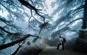特色: 霧凇非冰非雪,而是由于霧中無數(shù)零攝氏度以下而尚未凝華的水蒸氣隨風(fēng)在樹枝上不斷積聚凍粘的結(jié)果,表現(xiàn)為白色不透明的粒狀結(jié)構(gòu)沉積物。霧凇形成需要氣溫很低,而且水汽又很充分,同時能具備這兩個形成霧凇的極重要而又相互矛盾的自然條件更是難得。霧松具有“美、媚、柔、透”等特點,極具觀賞性。她全方位、大面積覆蓋,裝點著天柱山的樹木、山峰、巖石、大地。風(fēng)一吹來,掛著霧凇的樹...